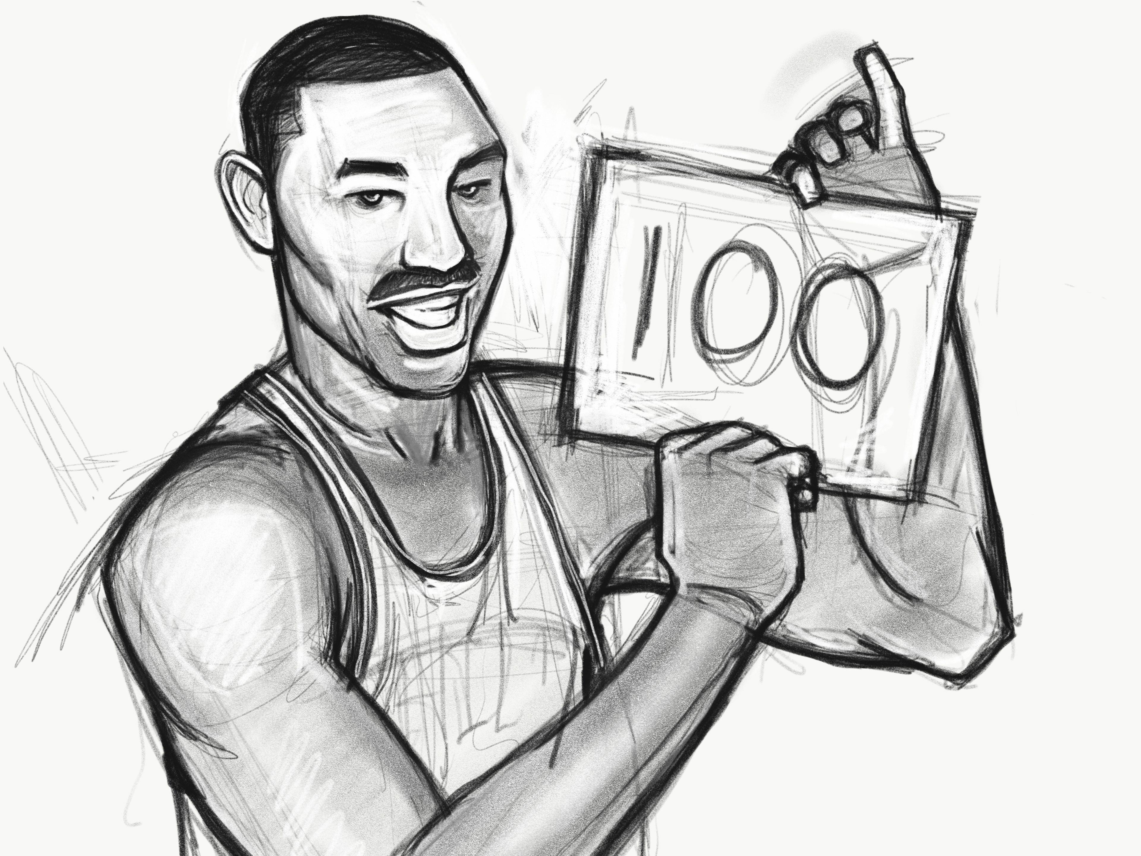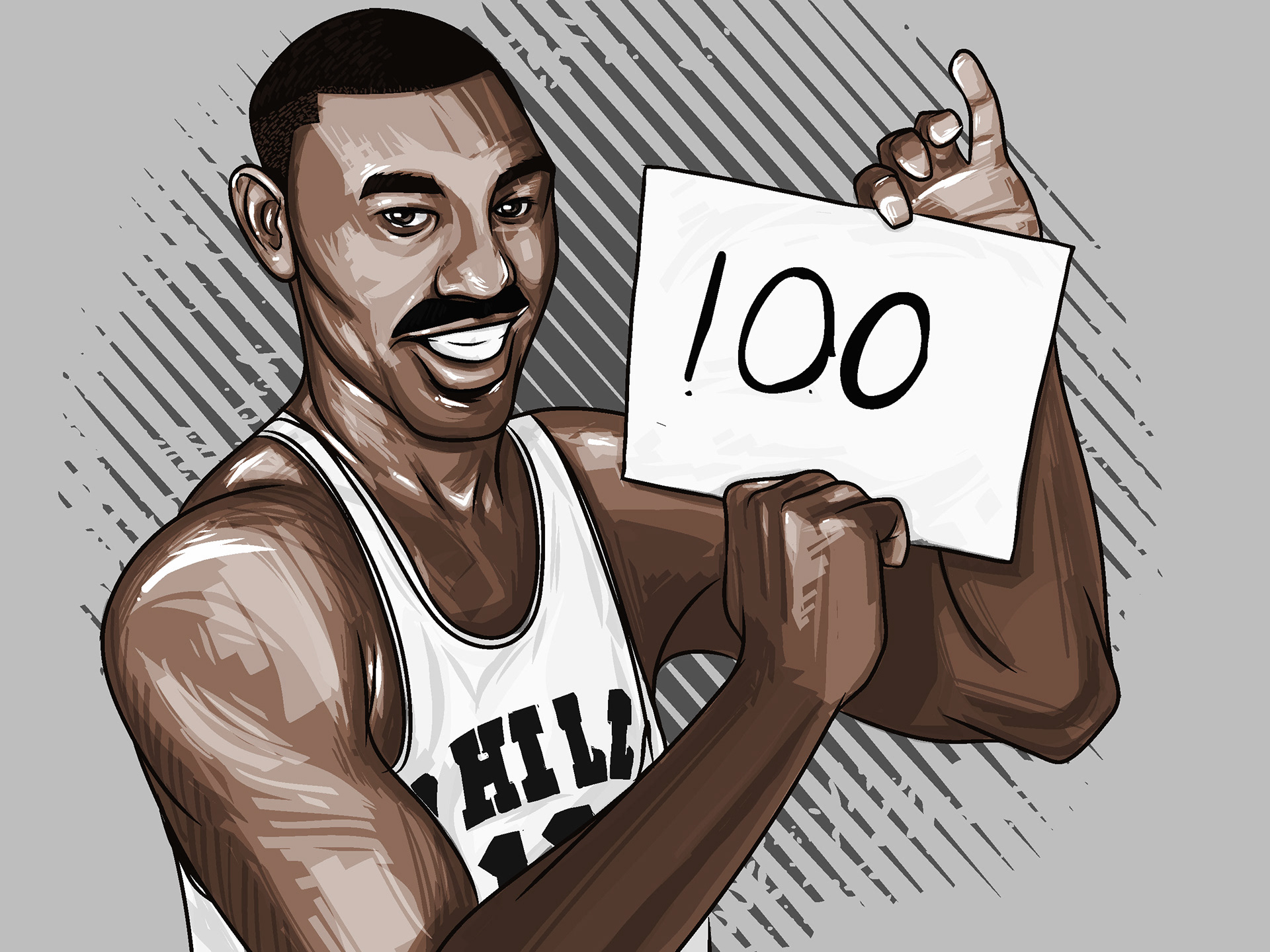 Art tribute to Wilt Chamberlain's record-setting 100-point game on March 2, 1962.